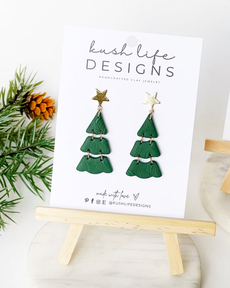 Clay Earrings | Green Tiered Christmas Tree Dangle