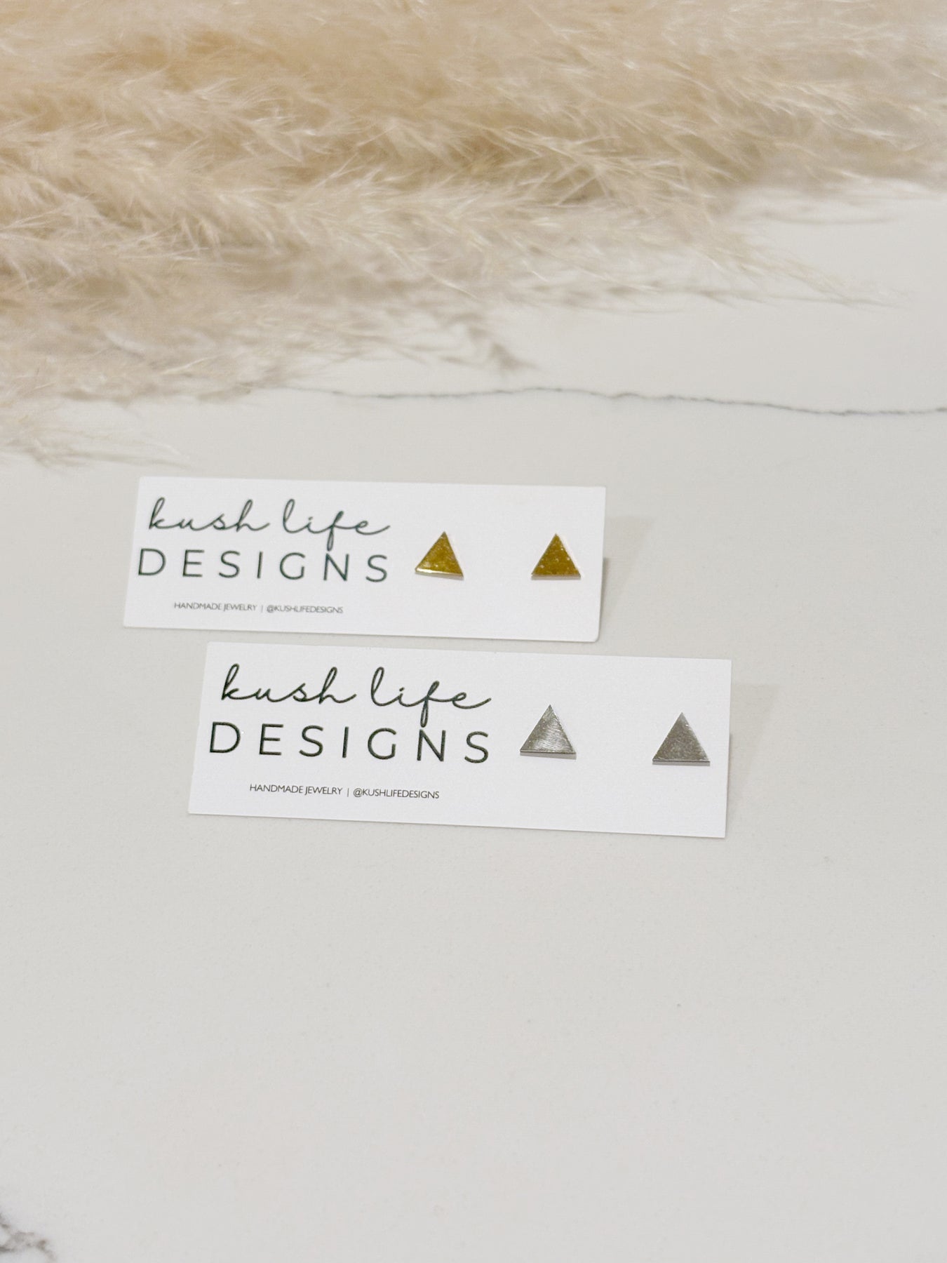Simple, modern, and effortlessly wearable — these Triangle Studs are the perfect everyday go-to. Handcrafted from polymer clay and finished in metallic gold or silver, they add just the right amount of shine without feeling flashy.